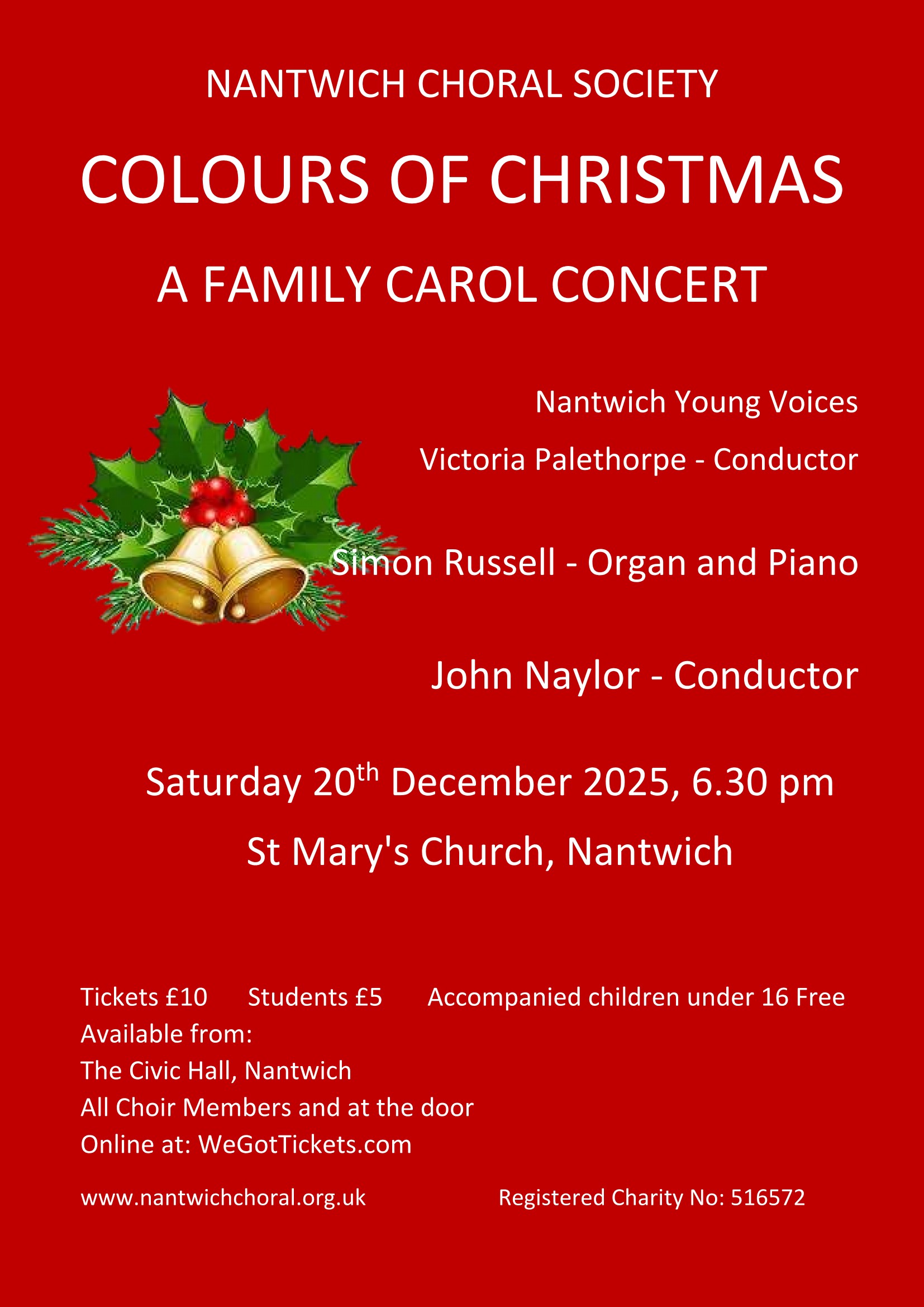 We rehearse on Wednesday evenings at the Methodist Church on Hospital Street, Nantwich starting at 7:30pm and last for about 2 hours. (arrive any time from 7:00pm).